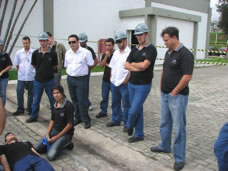 Os participantes também experimentaram situações simuladas em campo para atendimento de primeiros socorros com acidentados, combate a incêndios, uso de equipamentos, etc.